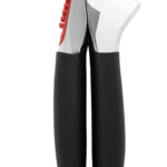 ® Garlic Press, 7″ / 18cm, zinc. Now even stronger than ever with sturdy, die-cast zinc construction and a large capacity garlic chamber. Crushes garlic with a simple squeeze and easily pushes garlic through the holes. A built-in cleaner allows for easy cleaning; just flip the handles over to clean out excess garlic. The soft handles are slightly arched for comfort and absorb pressure while you squeeze.